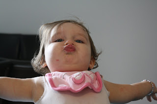 During the party Olivia went over to the food table and reached up and grabbed a cupcake off the table and started dipping her finger in the frosting and licking it. She was very pleased with herself.